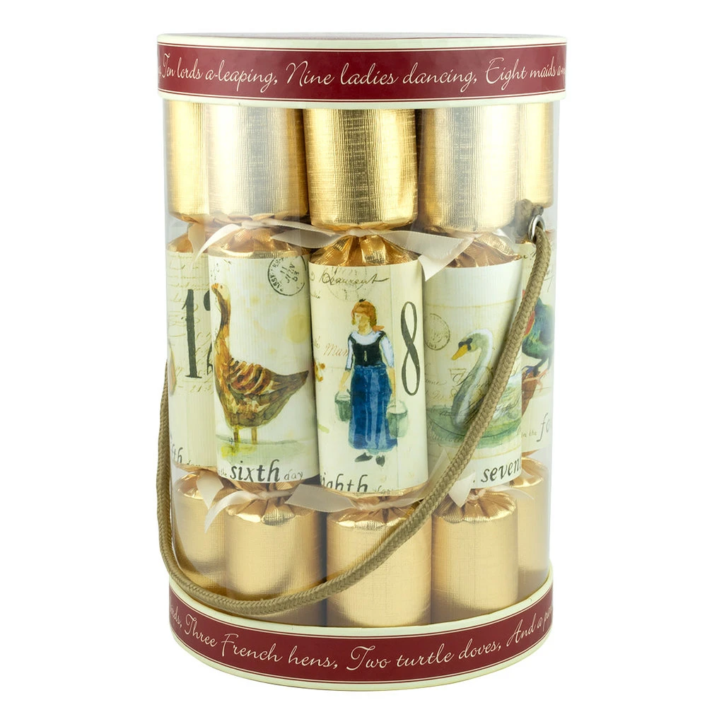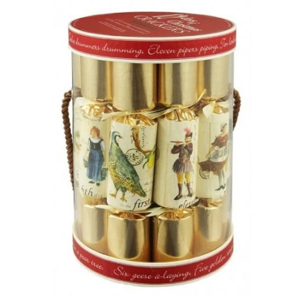 Party crackers are a British tradition dating back to the Victorian times when a confectioner started selling sugared almonds, each with a motto and wrapped in a twisted paper package, as love tokens. One day a jet of resin from the confectioners log fire burst into flame with a loud ‘crack’. Using this idea he decided to make a log shaped package that would produce a surprise bang and inside would be an almond and a motto. It soon became a firm favorite at parties with toys and hats added to each ‘cracker’. By the end of the century it was well established as a traditional holiday custom. Place one at each place setting for decoration and then pull it open with a friend and share the fun!