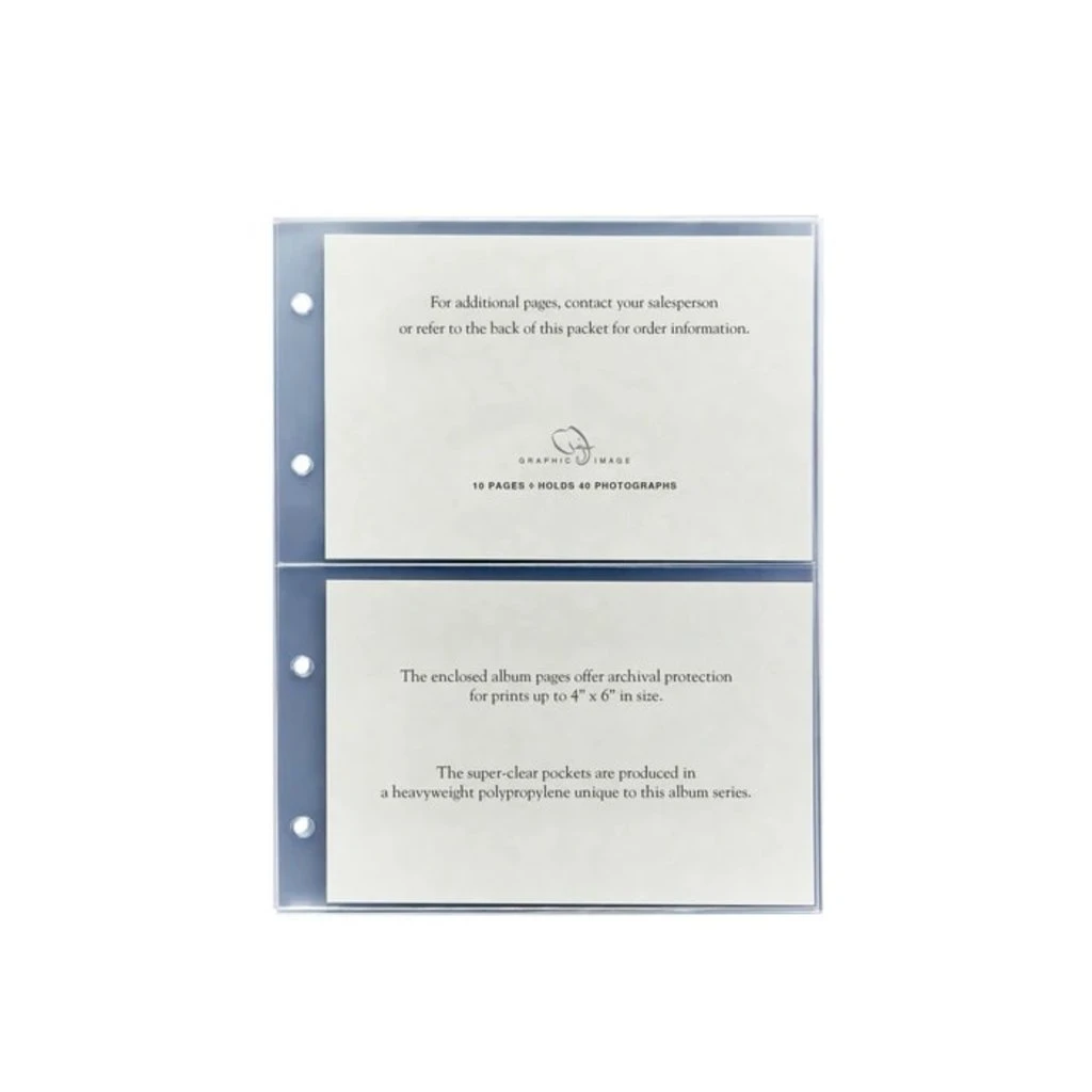 Medium Ring Clear Pocket Album Refills for graphic image medium 3-ring photo album. Archival quality polypropylene pages that are heavyweight and super clear. Pages won’t wrinkle or harm photos.