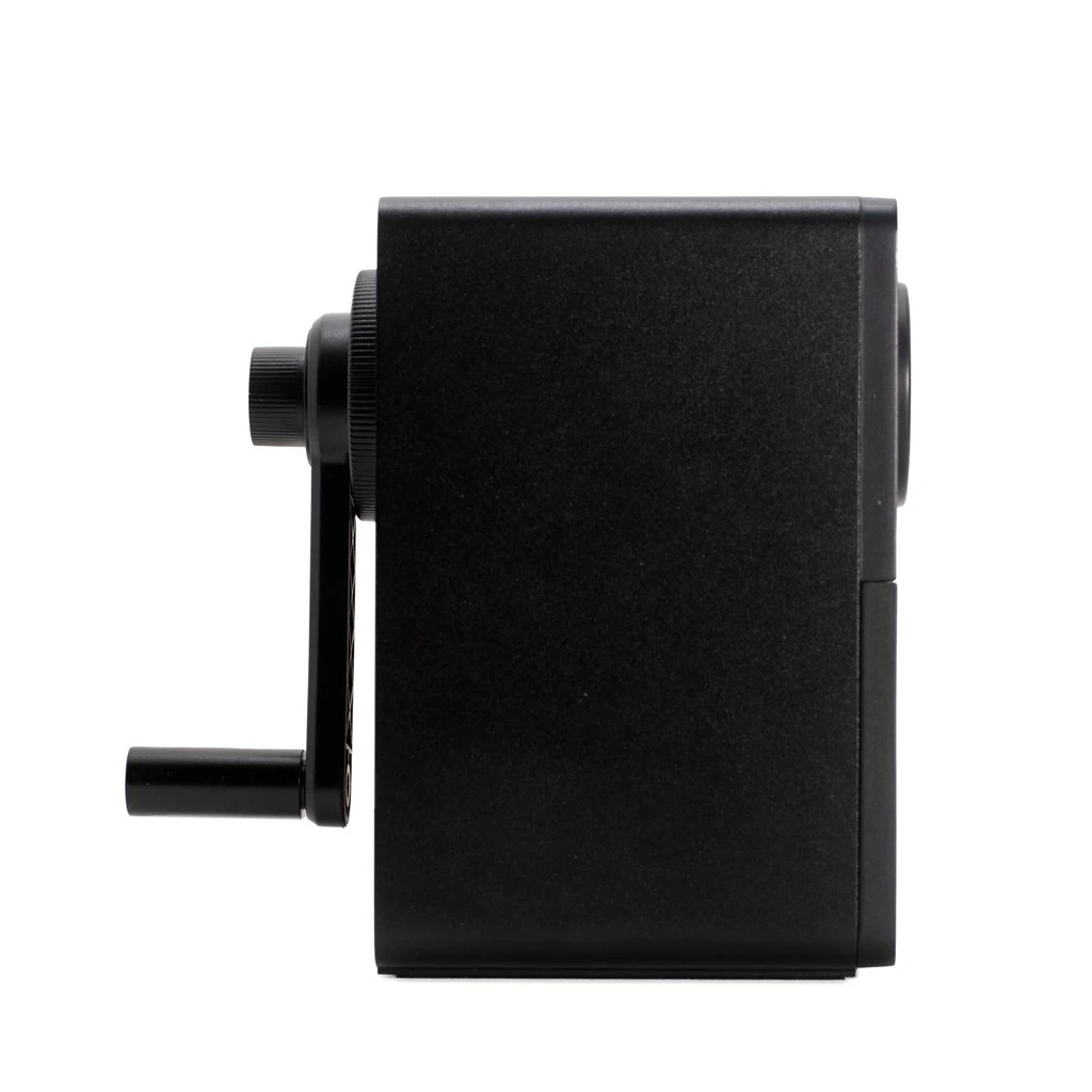 The Blackwing Desktop Sharpener uses a helix blade to sharpen your pencils to perfection. The dial on the crank allows you to adjust the point from long and curved to short and blunt. Its unique sharpening system retracts the pencil automatically without scuffing the finish, and it includes an automatic brake to prevent over-sharpening.
