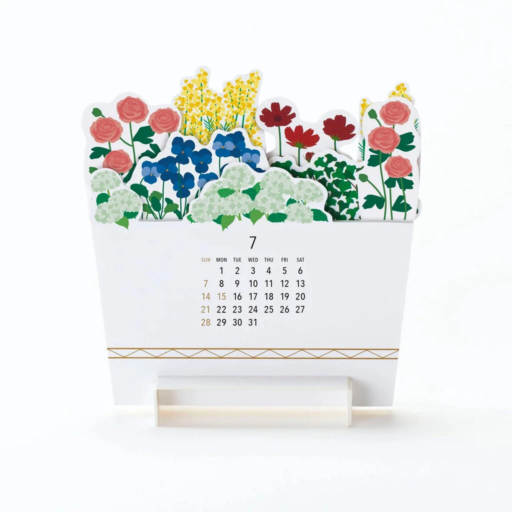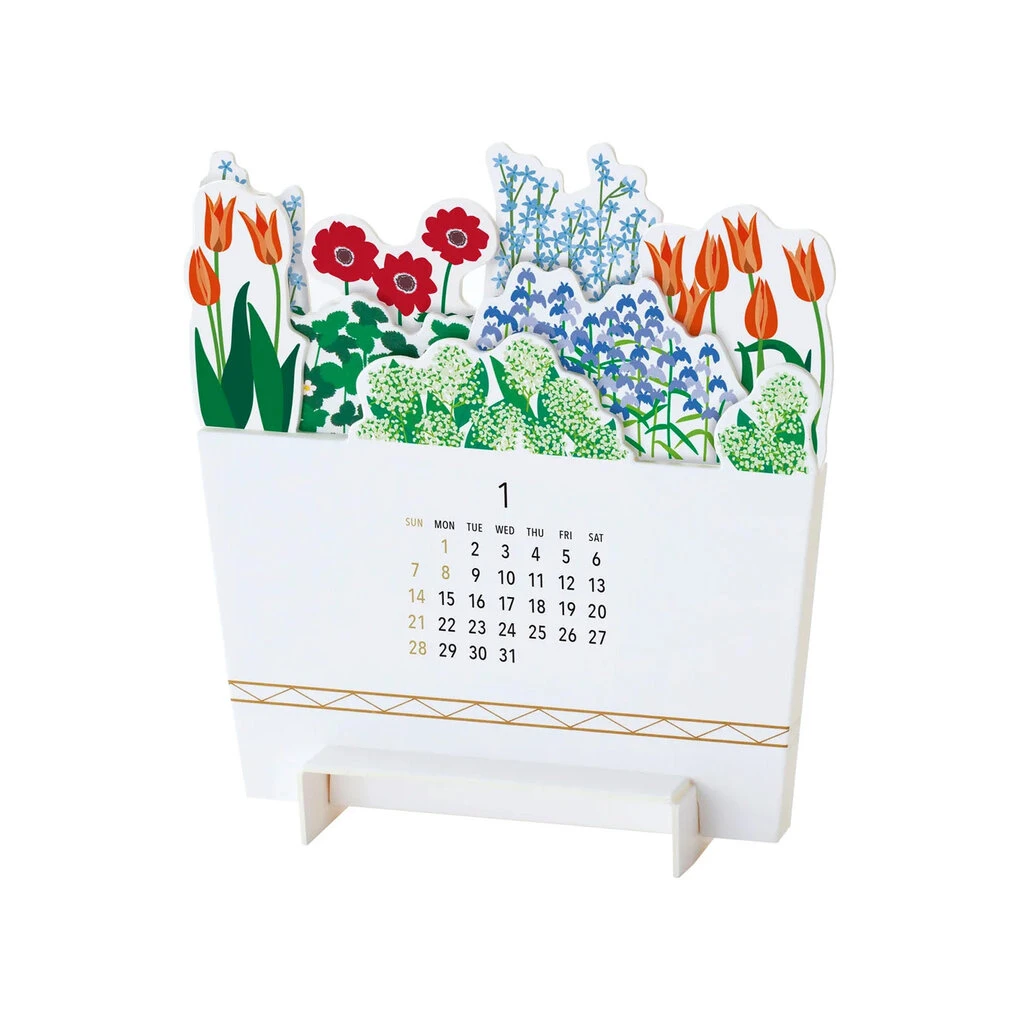 The Bloom is a calendar designed around the motif of planted flower grouping. Set the six sheets on top of the stand one in front of the other, in the order of January through June. When the month is finished, turn it over and move it all the way to the back.