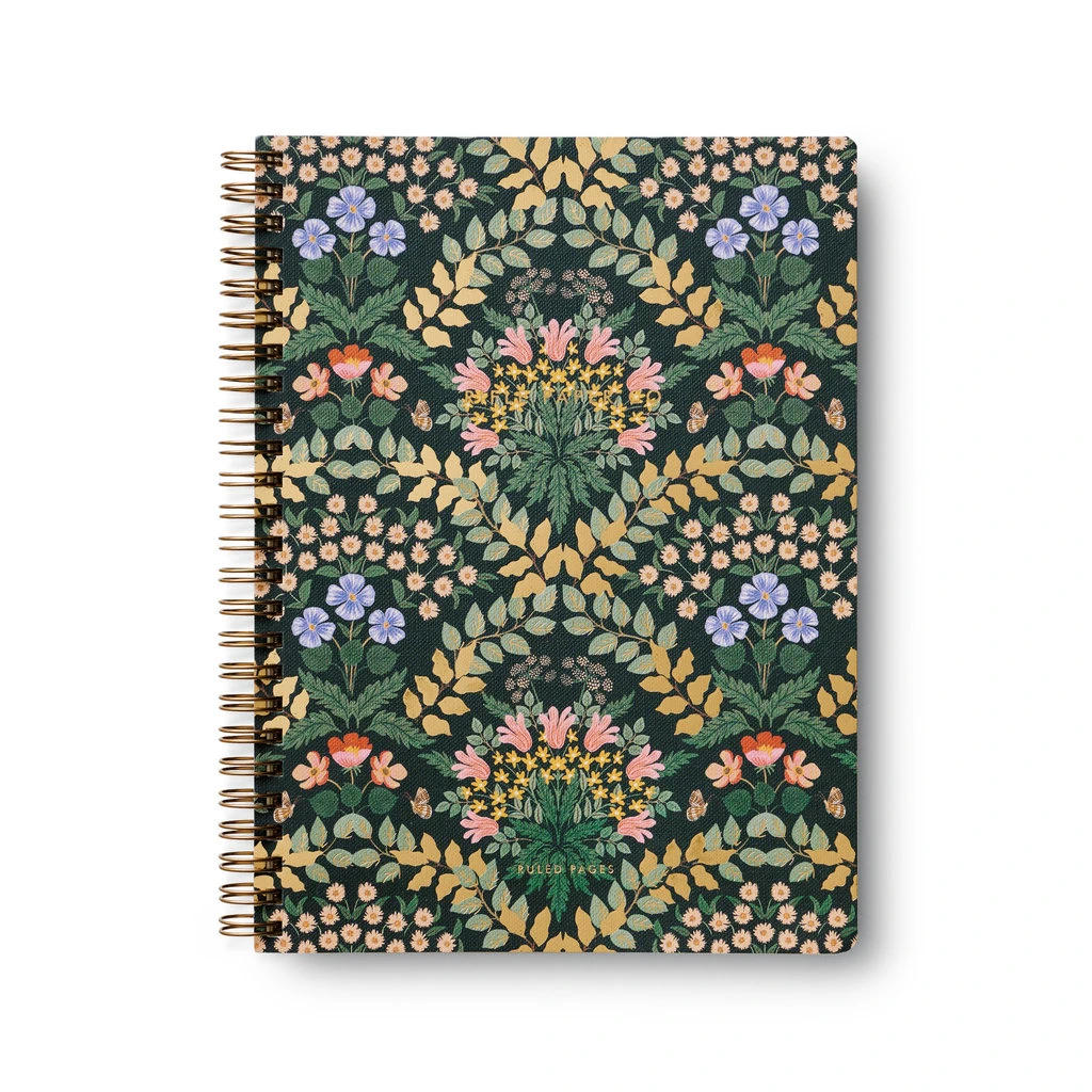 Hit the books with Rifle Paper’s softcover spiral notebooks, featuring full-color covers with gold foil accents, printed on a heavy-weight textured paper. The notebook has 150 ruled pages, a sturdy double-spiral binding, and pockets for storage.