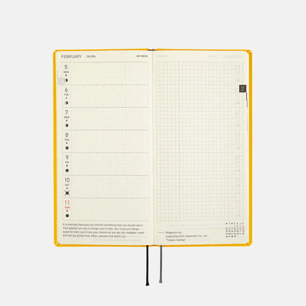 Poppin’ Yellow is a techo in creamy yellow. The year 2024 on the cover is foil-pressed in navy. The bright and fun color will cheer you up whenever it catches your eye.
