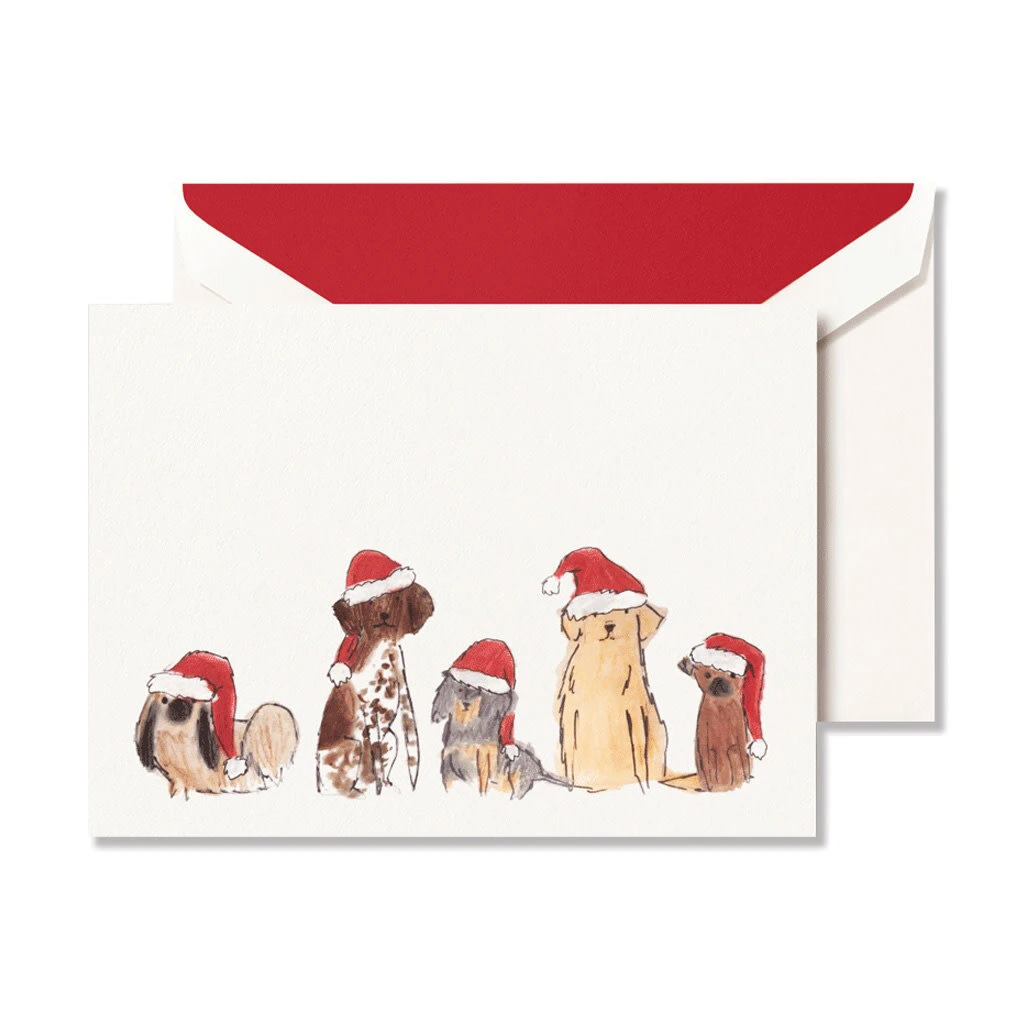 Crane’s favorite pups are back and as adorable as ever! Printed using the highest quality digital process on soft-to-the-touch pearl white Lettra, the Santa Dogs are decked out for the holidays, ready to make spirits bright with every seasonal note you send.