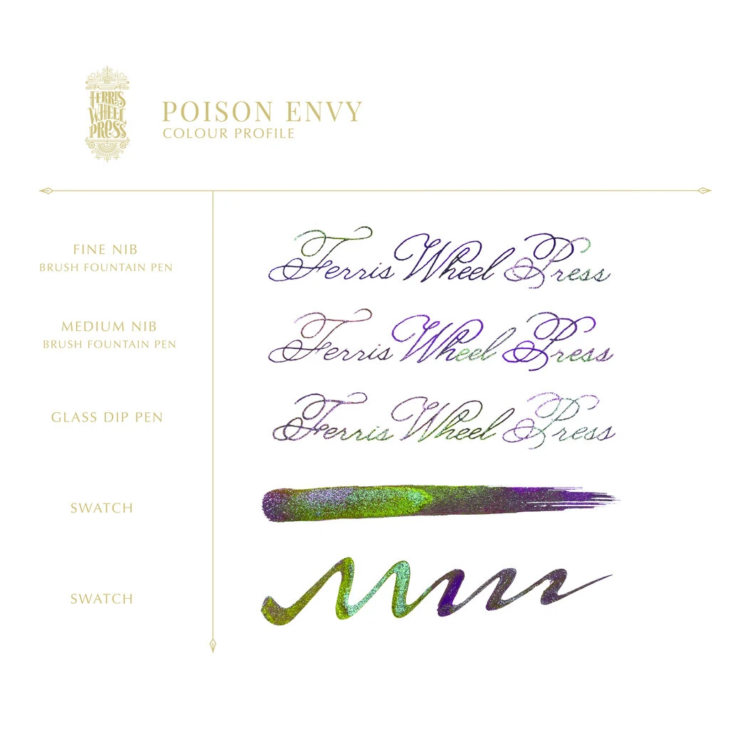 Traverse through the deepest recesses of the Evil Queen’s realm as we indulge in the tantalising taste of her poison apple. With each stroke of your pen, the deep velvety purple ink dances upon the page glimmering with the smart sheen of green Duochrome shimmer, casting a spell of dark allure. Whether crafting a cautionary tale or delving into the depths of forbidden desires, let Poison Envy set the tone for your tale of treachery and temptation.