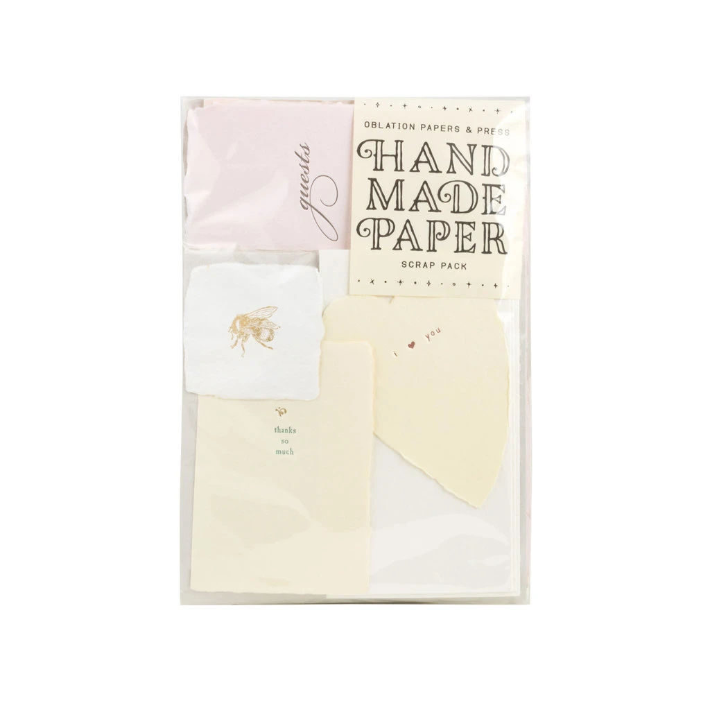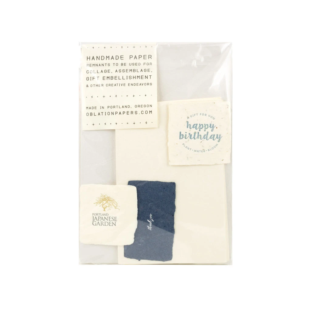 here at oblation papers & press, our handmade paper is simply too good to let any go to waste! that’s why we’ve created this new handmade paper scrap pack, to utilize the beautiful leftover fragments and off cuts. each is one of a kind, and filled to the brim with quality papers ranging in size (up to 8.5 x 11″), color, and finish. these packs are curated by hand to ensure a colorful collection of unique handmade paper goodies, just waiting to be used.
