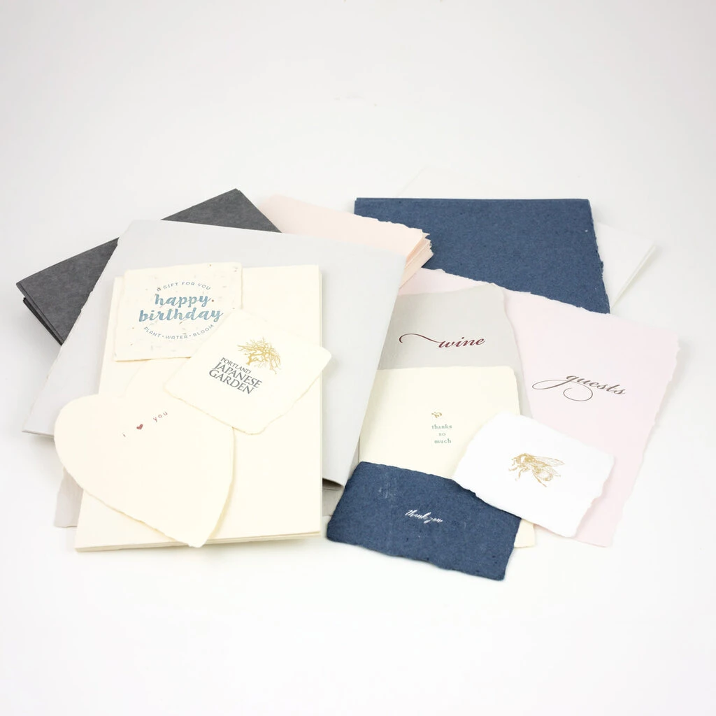 the papers can be used in many ways, and their use ultimately depends on your own creative endeavors! we’ve seen handmade paper used in collage, assemblage, gift embellishment, stationery, letterpress printing, and much more. many hand lettering artists and calligraphers find it to be the perfect backdrop to their work.