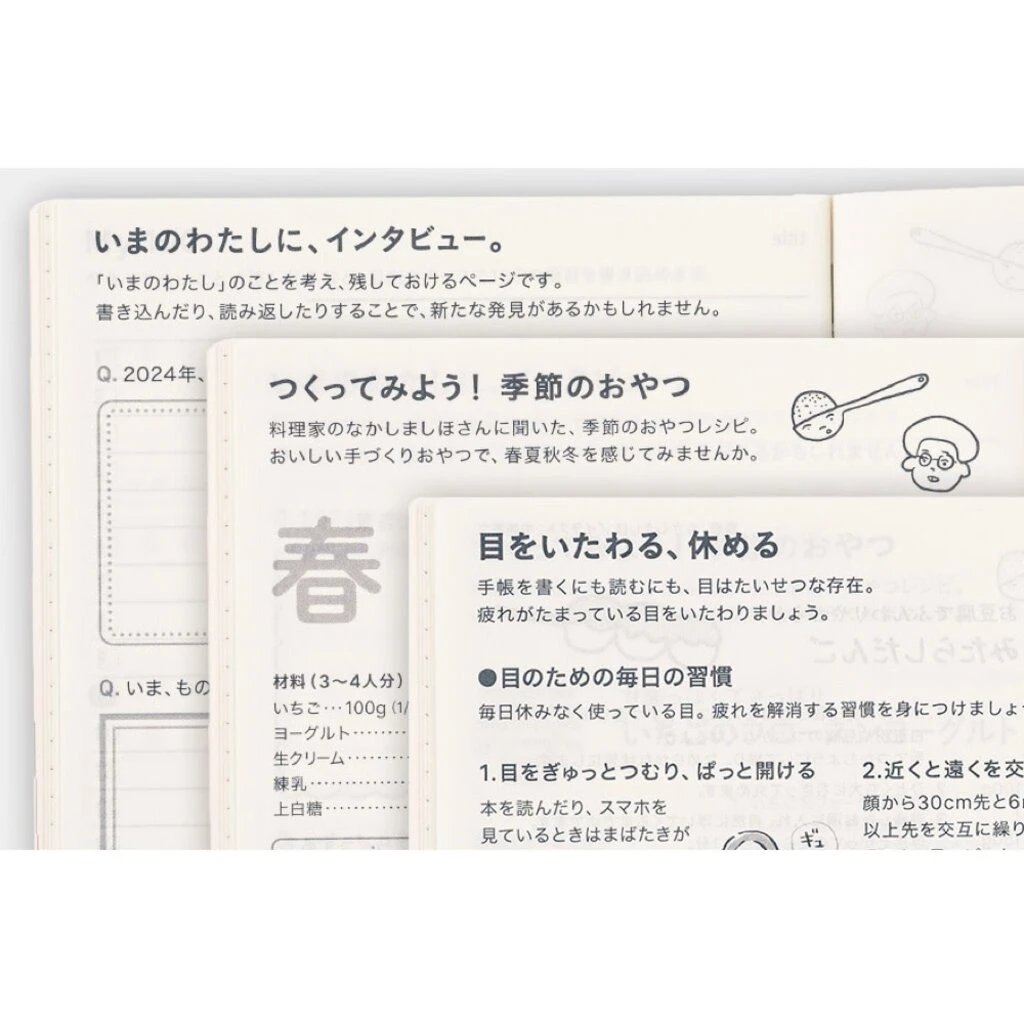 Other than the daily pages with lots of space to write, the book contains several sections that are great for schedule management, such as a yearly calendar, monthly calendar, and yearly index page. The back of the book has bonus pages, including An Interview with Myself, Seasonal Sweets to Make at Home, and Caring for Your Eyes.