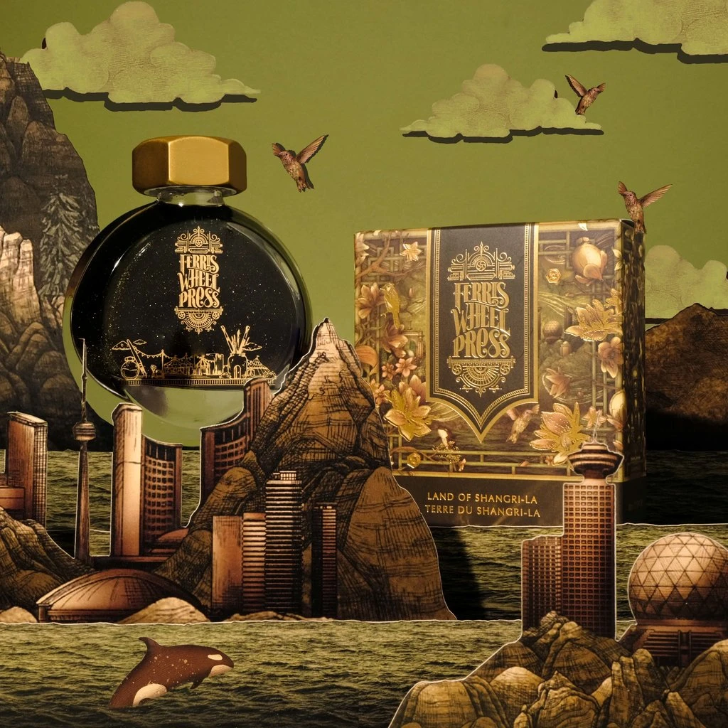 Ferris Wheel Press proudly partners with Shangri-La Hotels Canada to bring to life a stunning sparkling fountain pen ink that captures the spirit of Shangri-La properties around the globe.