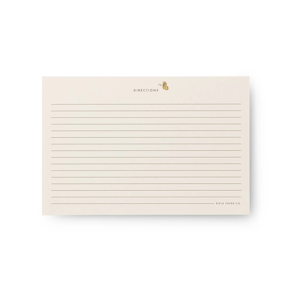 Jot down ingredients and instructions to your favorite dishes with Rifle Paper’s Recipe Cards, which can be tucked neatly inside our Recipe Tins.