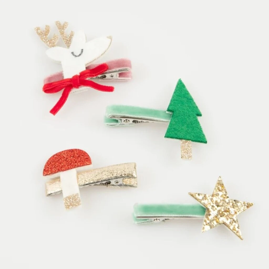 You’ll certainly look merry and bright with Meri Meri’s luxurious Christmas hair clips! They’re beautifully crafted with felt, velvet ribbons and glitter fabrics, and make the most wonderful gift. Perfect to pop into a Christmas stocking, or festive party bags.