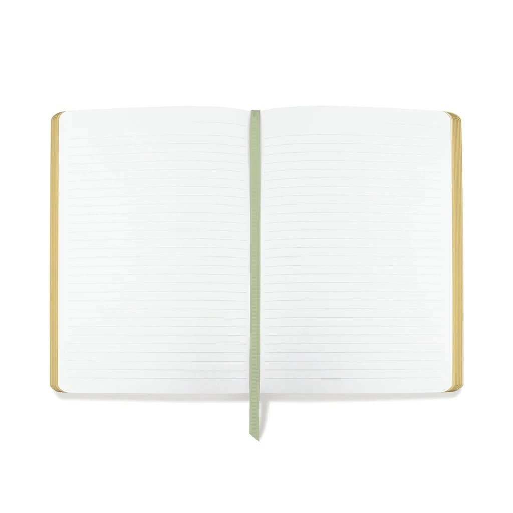 Journal with flexible paper cover, metallic gold art, and gold foil gilded edges.