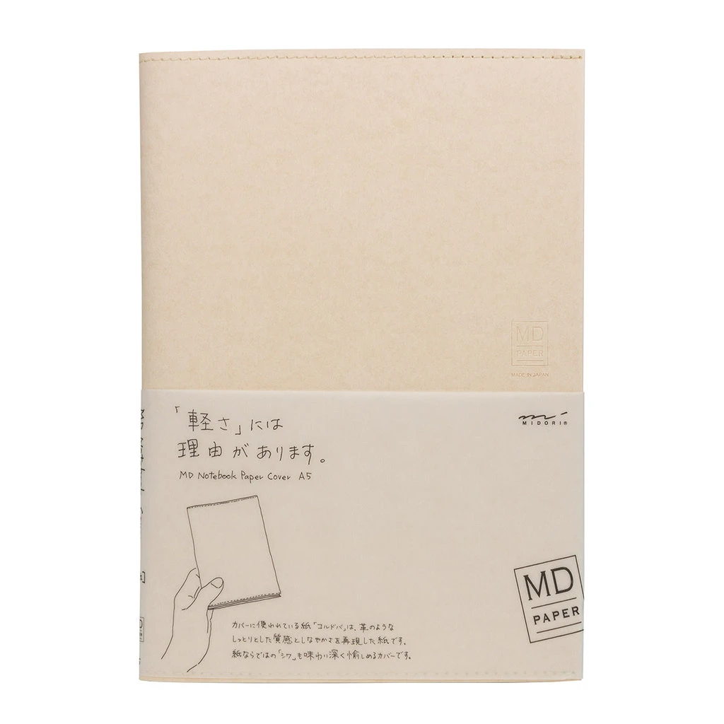 This pale paper cover is both light and durable, and keeps your Midori MD A5 Notebook protected.