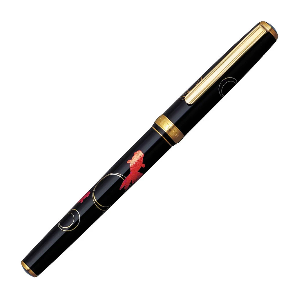 The highest level of craftsmanship has been generously poured into this Platinum fountain pen in magnificently decorating it with Kanazawa leaves. This fountain pen has a firm 18k gold nib and a very smooth stroke. It accepts proprietary Platinum ink cartridges or a Platinum converter (both are included) for filling with bottled ink.