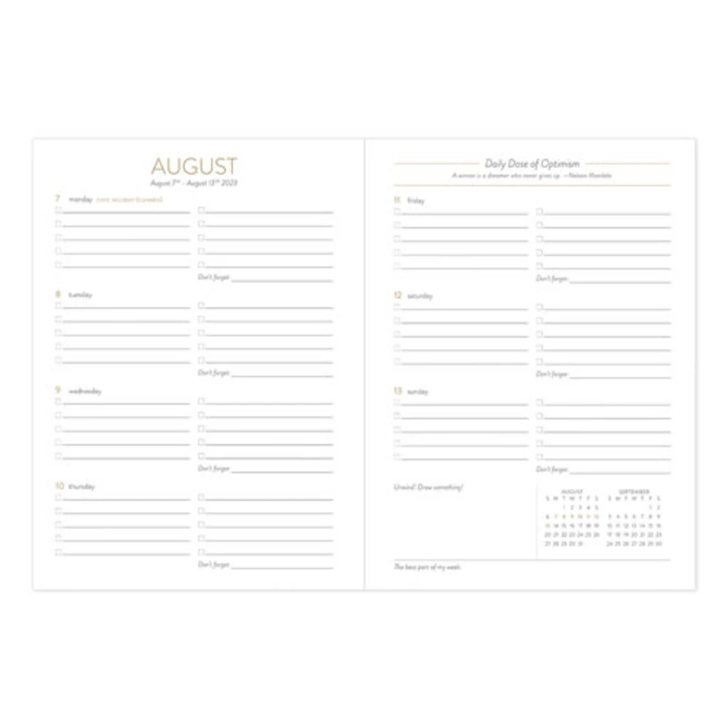 • Special sections include, Year at a glance, Holidays, Celebrations, Schedules, Travel and Notes, even a daily dose of optimism A sticker sheet to personalize your planner is also included