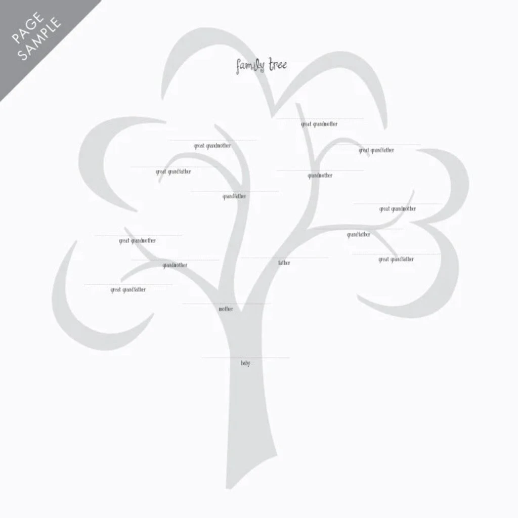 Inside you’ll find 24 pages containing fill-in prompts such as Before You Were Born, How Mom and Dad Met, The Big Day, Our Family Tree, How We Picked Your Name, Baby’s World and many more. There are plenty of pages for photographs, baby’s firsts, and pages to record the height and weight of your precious little one from birth to first birthday.