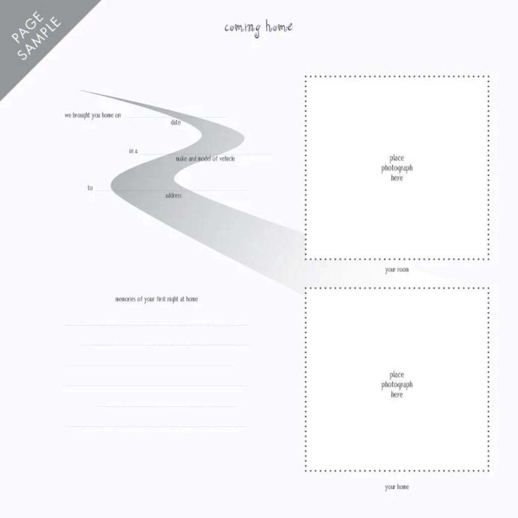 - 24 bright white, heavy-weight printed pages with prompts from birth to first birthday and room for photos. The Memories page includes a vellum envelope to capture clippings from baby’s first haircut or other sweet mementos.