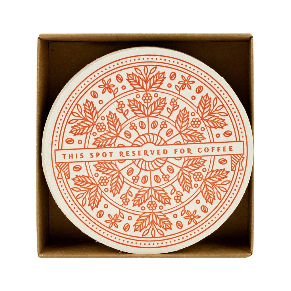 This set of twelve letterpressed coasters features a contemporary illustration of coffee beans and flowers. A perfect gift for any coffee-lover—especially if it’s tied to a pound of fresh local coffee!