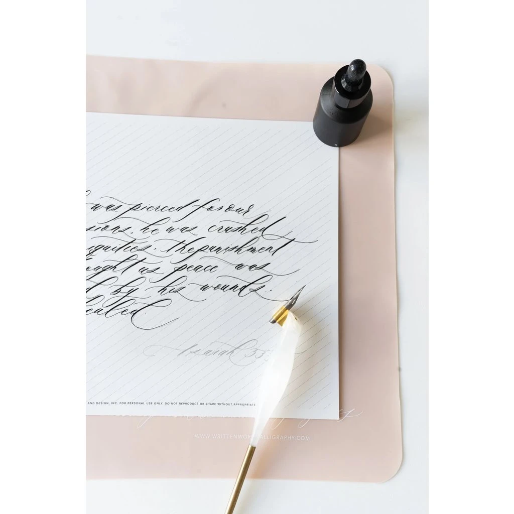 Pale pink silicon mat perfect for ink spills, wax sealing, and so much more! With “practice makes progress” printed in white at the bottom right corner.