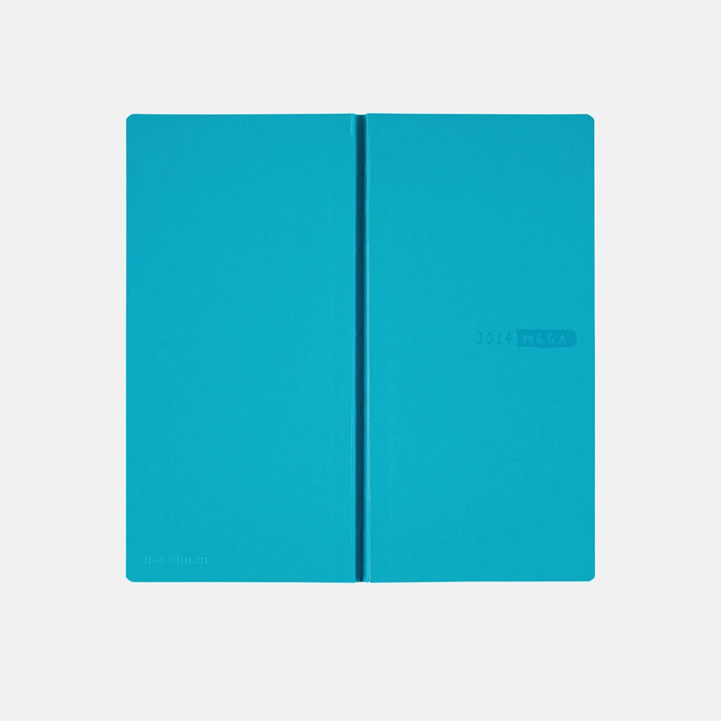 Aqua Blue features a vibrant sky blue with a fresh look. With its clean and clear look, you’ll be able to spend the year with a positive spirit. The year 2024 and the Mega logo are printed on the cover in puffy letters.