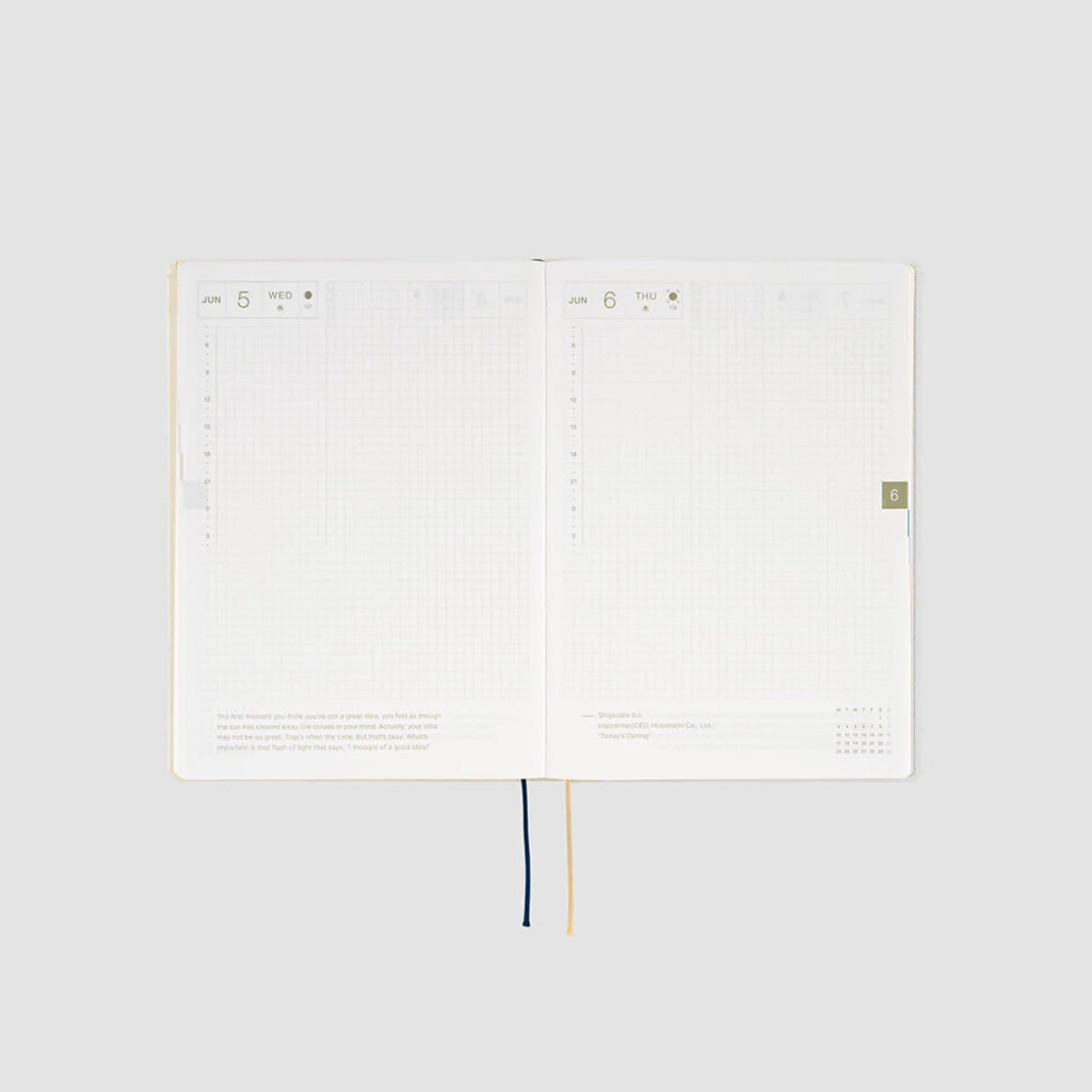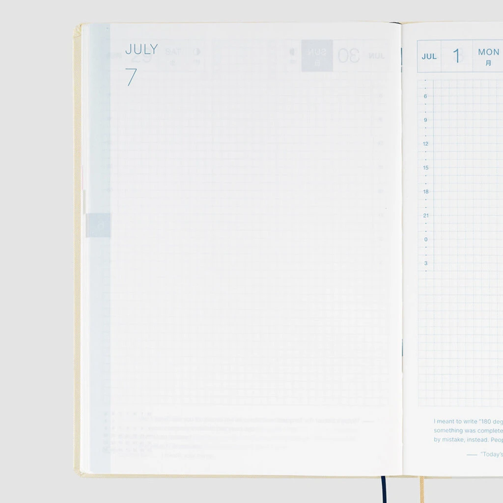 The contents are the same as the Hobonichi Techo Cousin book. The HON A5 size includes weekly pages which track a week in each two-page spread for easy planning and contain a handy time schedule.