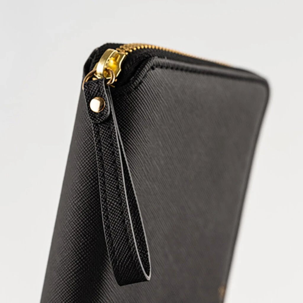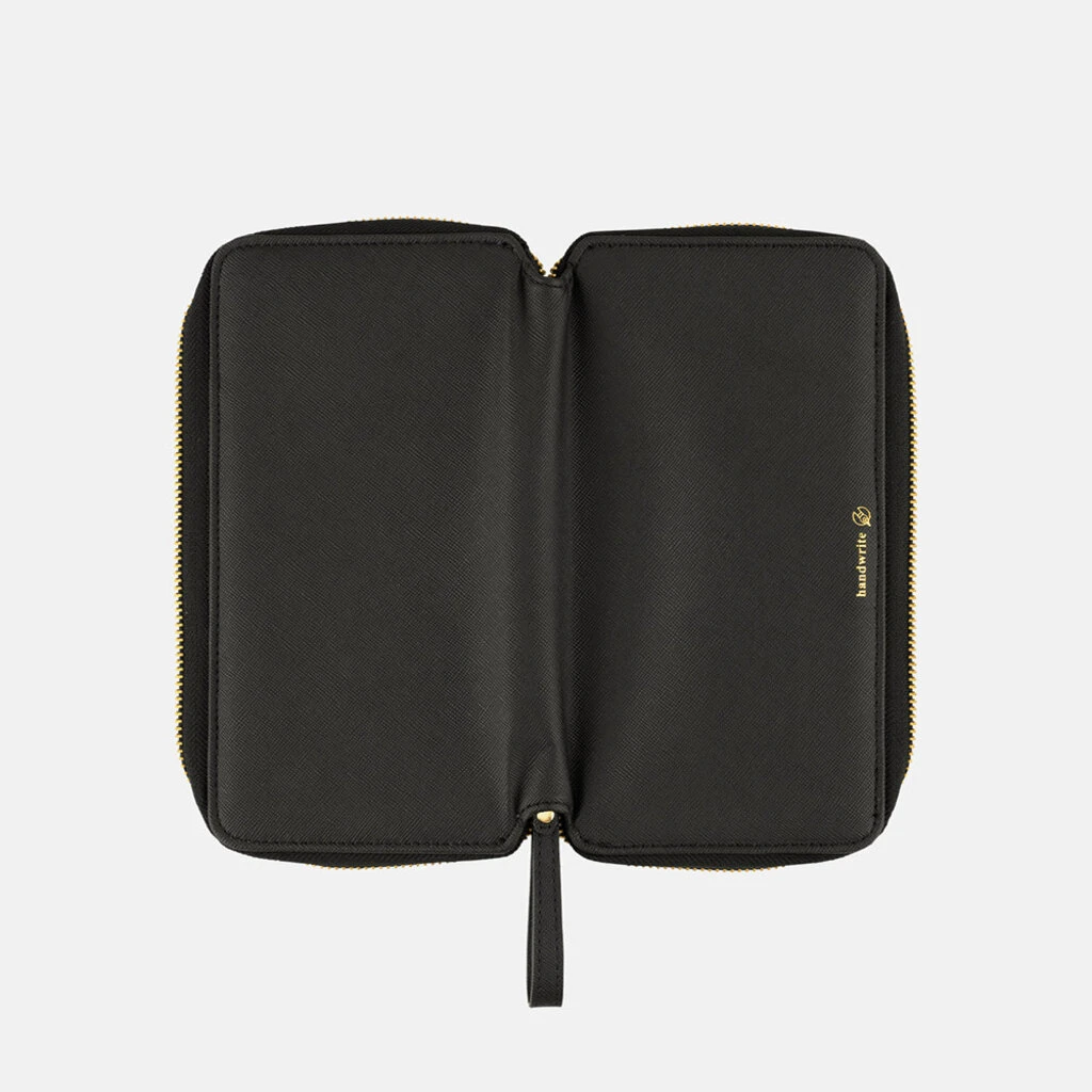 The cover interior is also a chic shade of black reminiscent of a quiet night sky. The pen hook is designed to hold a pen by its clip.