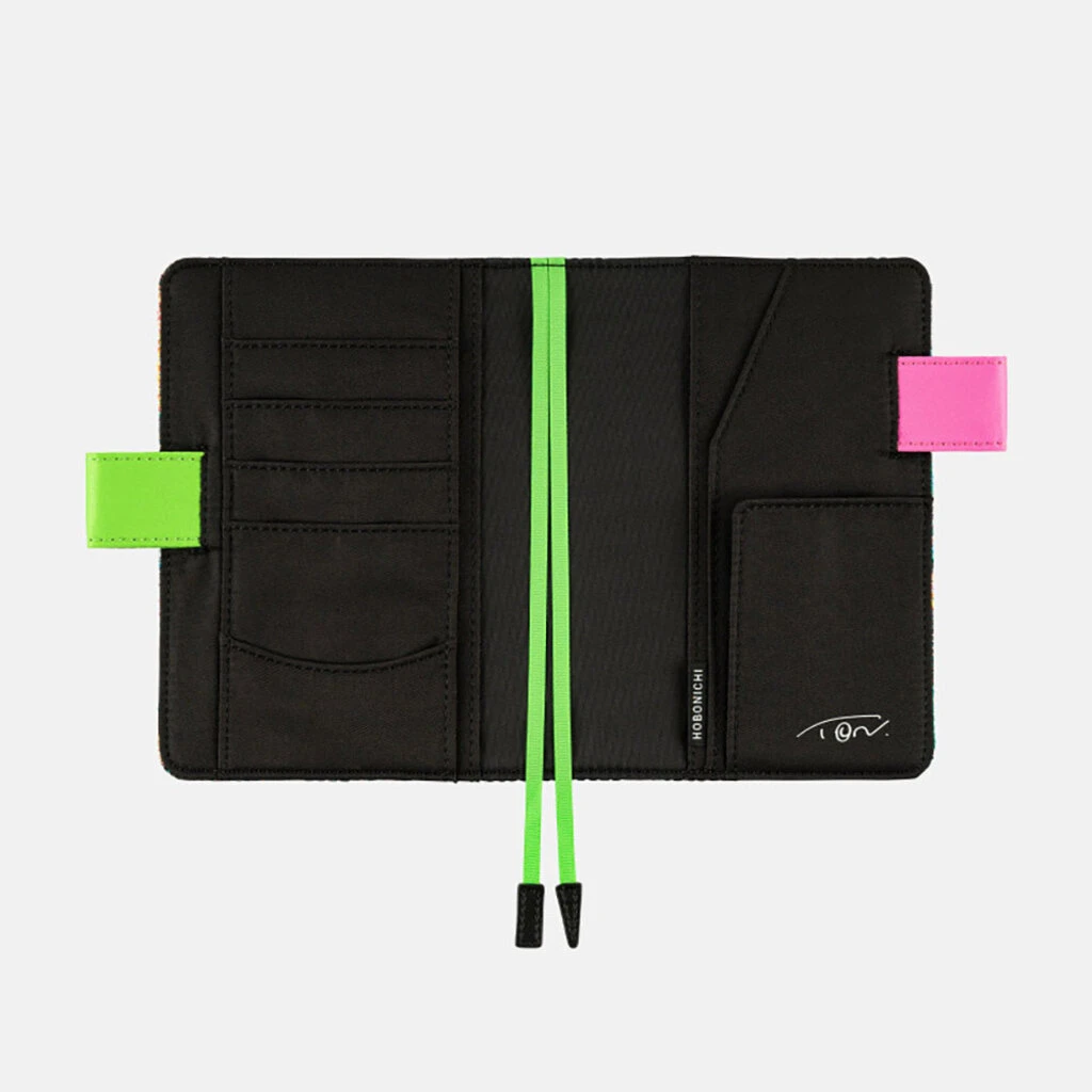 The inner cover is a subdued black, with Tomomi ©︎ Nishikawa’s autograph printed on the right pocket. The vivid green bookmark is an accent for the A6 size cover.