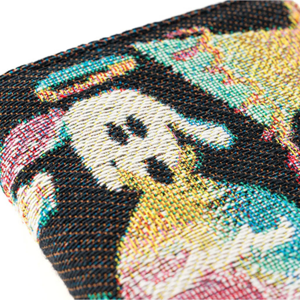 You can even feel the happiness of the dog, expressed by colorful weaving. The pattern emerges from the background, another feature of jacquard weaving.