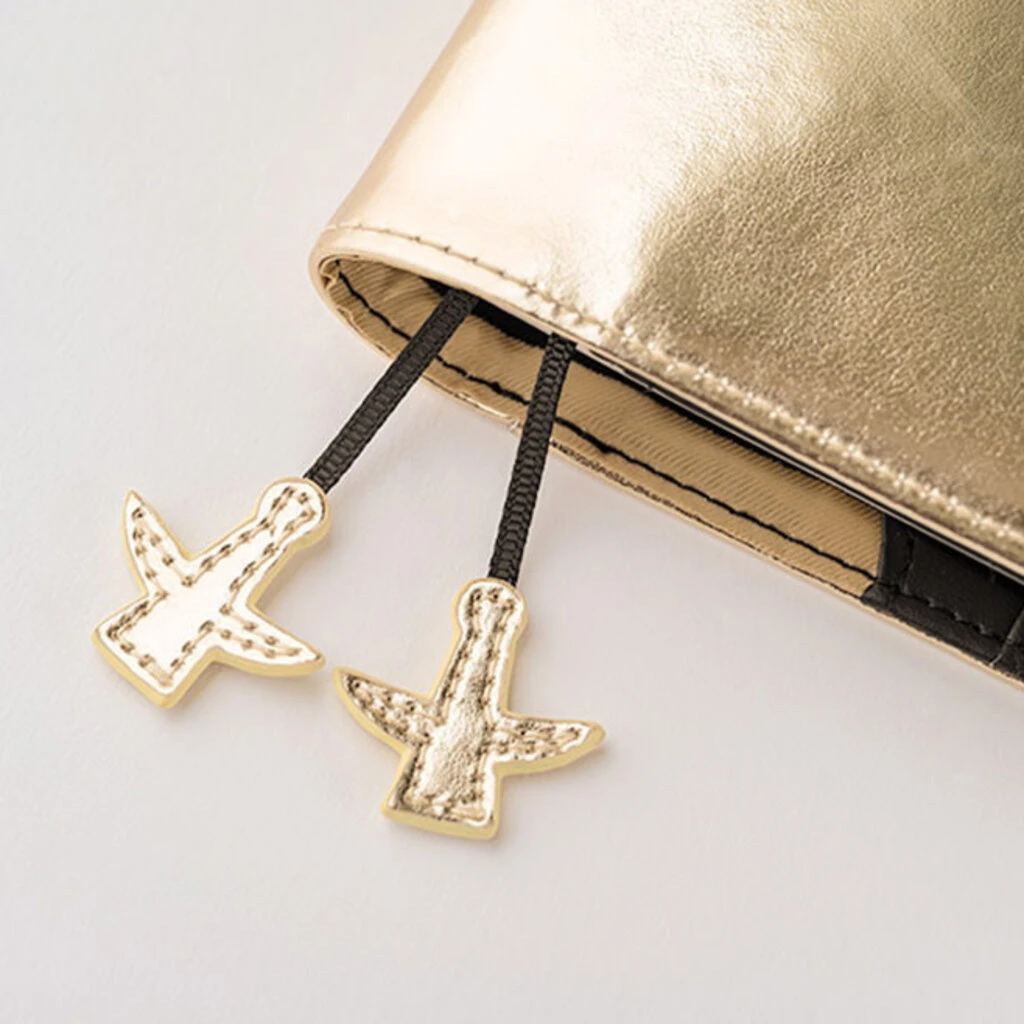 The gold bookmark charms are shaped like the Tower of the Sun.