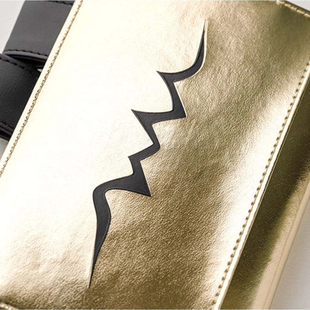 This sparkling gold techo cover has a large image of the Golden Mask. The black sections are embossed to give it texture.