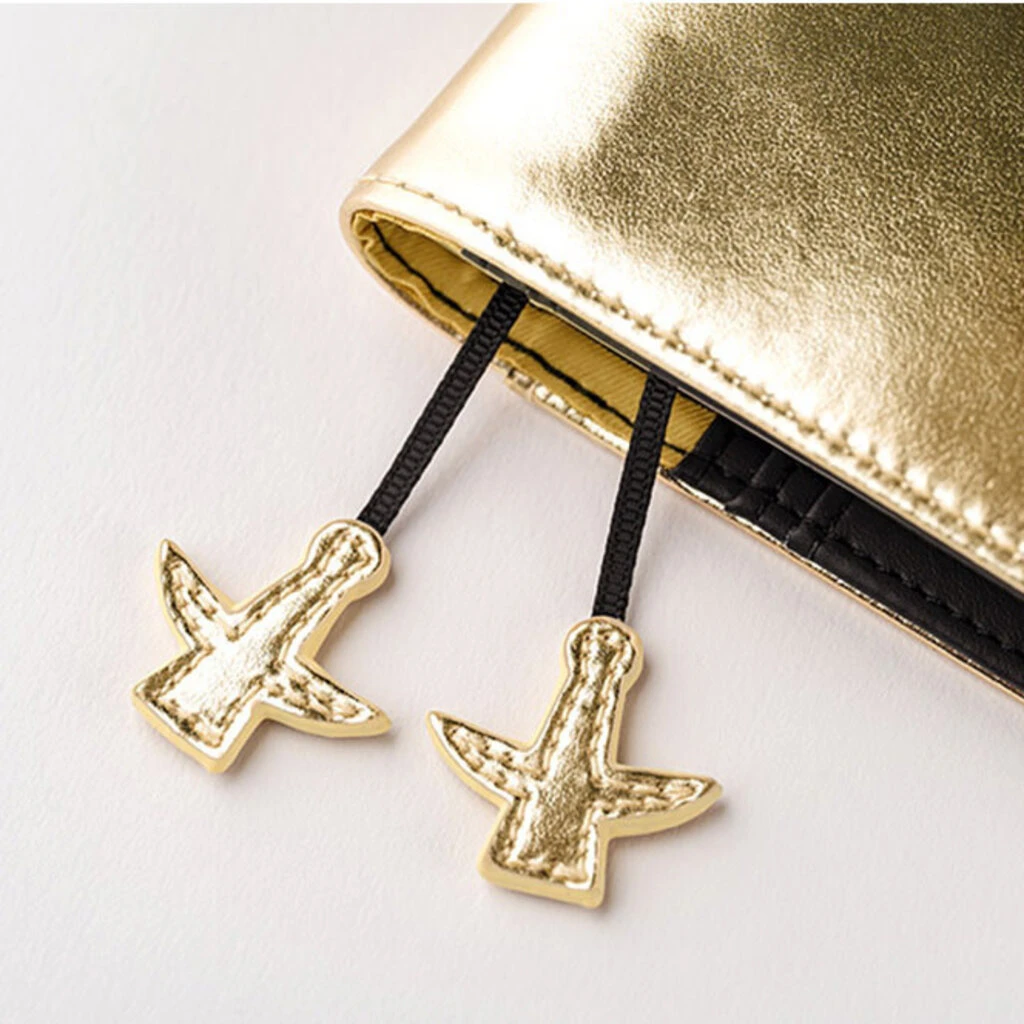 The gold bookmark charms are shaped like the Tower of the Sun.