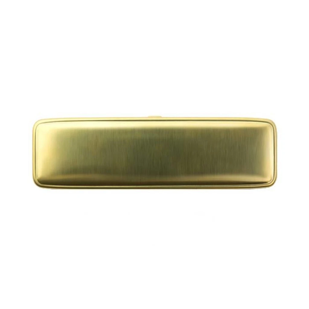 The simple and minimal design of BRASS PEN CASE is created by pressing a solid brass plate. The beautiful shape that resembles the body of a vintage car, is skillfully crafted by experienced pressing craftsman in Japan. The lustrous golden hue of the pen case deepens over time and bring anytime, and acquires the rustic appearance of an antique brass item.