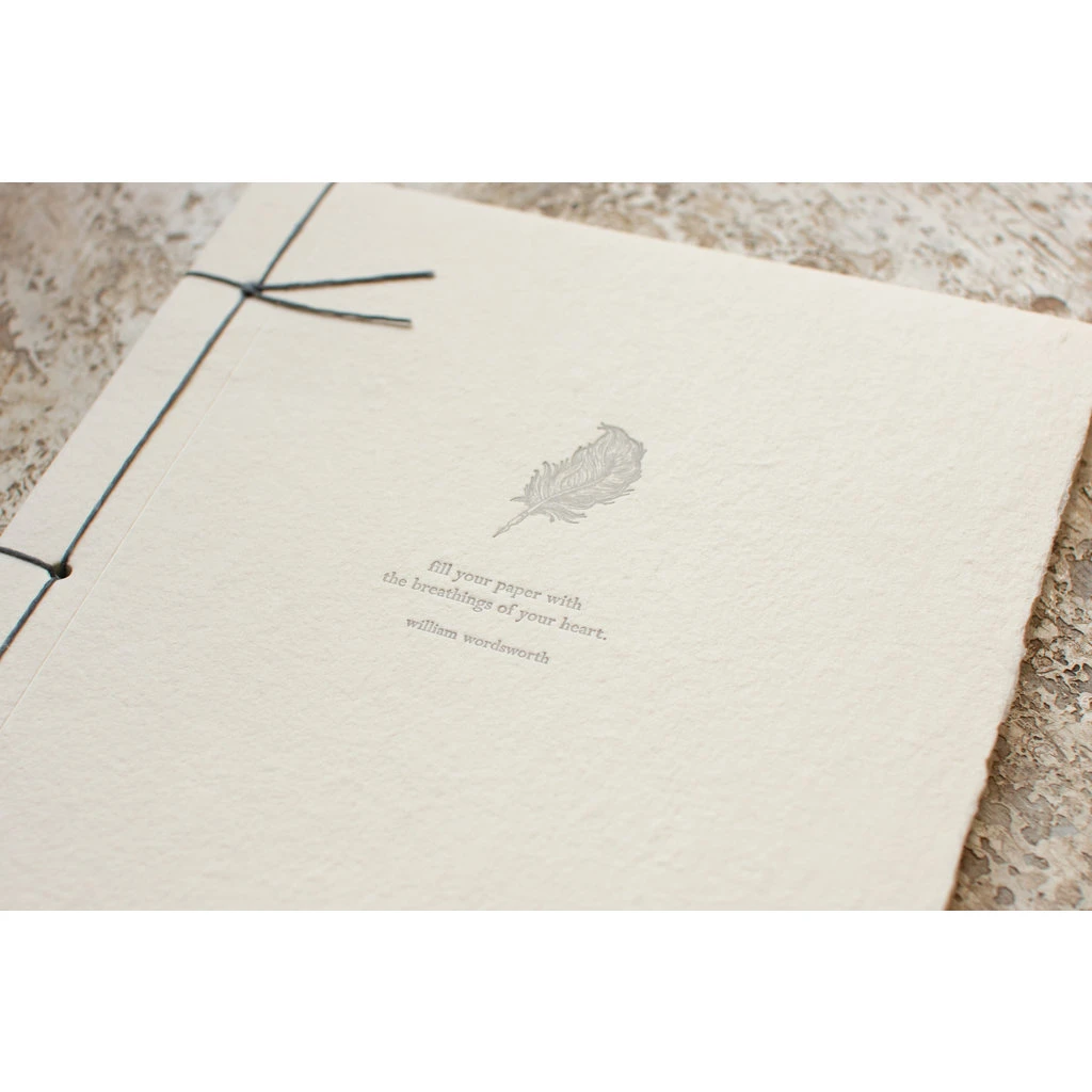 our inspiration journal collection features a minimal design with striking quotes from prominent individuals on a handmade paper cover. carefully hand-bound in our portland paper studio.
